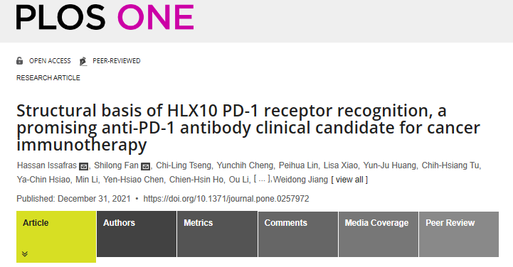 Issafras H, Fan S, Tseng C-L, Cheng Y, Lin P, Xiao L, et al. (2021) Structural basis of HLX10 PD-1 receptor recognition, a promising anti-PD-1 antibody clinical candidate for cancer immunotherapy. PLoS ONE 16(12): e0257972. https://doi.org/10.1371/journal.pone.0257972