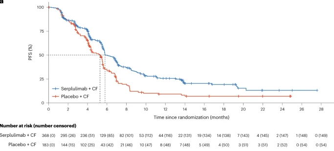 ASTRUM-007(NCT03958890)是一項隨機、雙盲、多中心的Ⅲ期臨床試驗,旨在研究斯魯利單抗對比安慰劑分別聯合化療在既往未接受治療、PD-L1陽性(綜合陽性評分≥1)的晚期ESCC患者中的療效和安全性。551例患者以2∶1的比例隨機分組,兩組患者分別接受斯魯利單抗或安慰劑聯合5-氟尿嘧啶和順鉑治療(每2周1次)。斯魯利單抗聯合化療組的中位無進展生存期(PFS)顯著長於安慰劑聯合化療組(5.8 vs. 5.3個月;風險比[HR] 0.60,95% CI 0.48–0.75;p<0.0001)。斯魯利單抗聯合化療組對比安慰劑聯合化療組的中位總生存期(OS)也獲得了顯著改善(15.3 vs. 11.8個月;HR 0.68,95% CI 0.53–0.87;p=0.0020)。安全性方面,斯魯利單抗聯合化療的安全性良好。與單純化療相比,斯魯利單抗聯合化療(每2周一次)作為一線治療方案顯著改善了PD-L1陽性晚期ESCC患者的PFS和OS,此治療方案為該患者群體的治療提供新選擇。