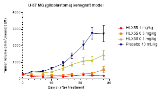 不同剂量HLX55在人胶质母细胞瘤异种移植模型中对肿瘤的抑制作用