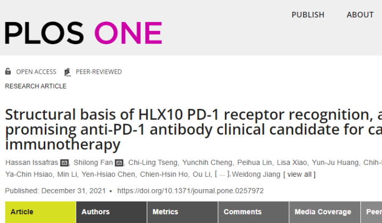 The preclinical and structural analysis results of Henlius’ innovative anti-PD-1 mAb serplulimab, published in an international journal PLOS ONE